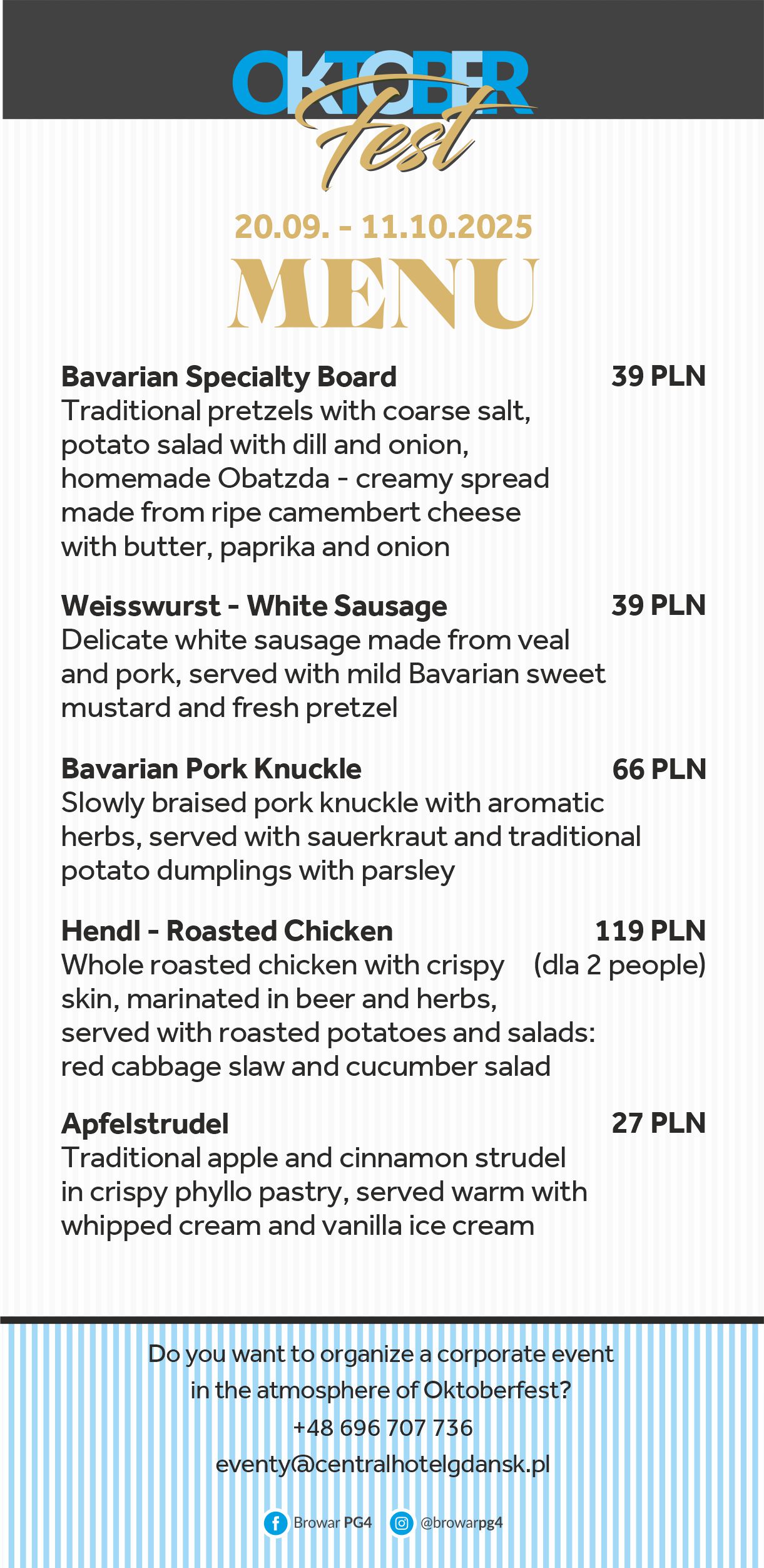 Także w PG4 celebrujemy ten wyjątkowy zwyczaj. W tym czasie można skosztować u nas nietuzinkowego piwa Golden Oktober oraz menu dedykowanego specjalnie na tę okazję.